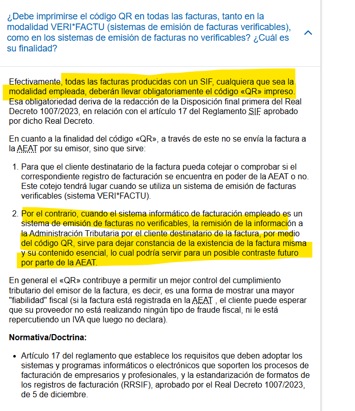DoctorGanon Posted December 1 Posted December 1 Parece por las instrucciones de la Integración con la Autoridad Fiscal que una vez completado ese proceso, las facturas, tanto simplificadas como normales, son enviadas a la Autoridad FIscal (AEAT) y se imprime el Código QR en los Tickets / Facturas. ¿Alguien que esté en real (yo estoy aún en pruebas) puede conformar que esto funciona? es decir que se genera correctamente el ticket con el QR ? Sabe alguien si se elige 'No Verifactu' si se genera ese QR (que es obligatorio sea comunicado a la AEAT o no ?