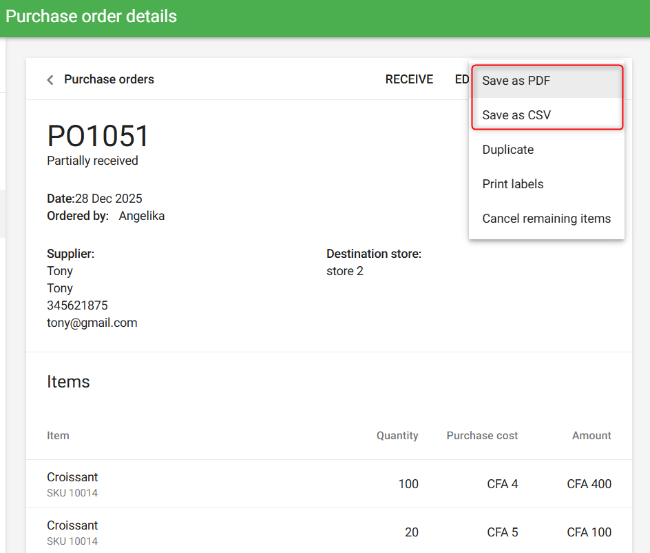 ISA_CR Posted Tuesday at 02:14 AM Posted Tuesday at 02:14 AM Hi! Greetings from Costa Rica. We are very new to using this software, and I need to improve the control of our purchases and suppliers. This is one of the main reasons why we are paying for Advanced Inventory in Loyverse. I would like to know how I can keep control without using the final total of the Purchase Order (PO). Is there any way to export reports for Purchase Orders and suppliers so I can see how many purchases I make and how much I spend with each one? Thank you very much for your help. I am also curious to see how other businesses handle this.